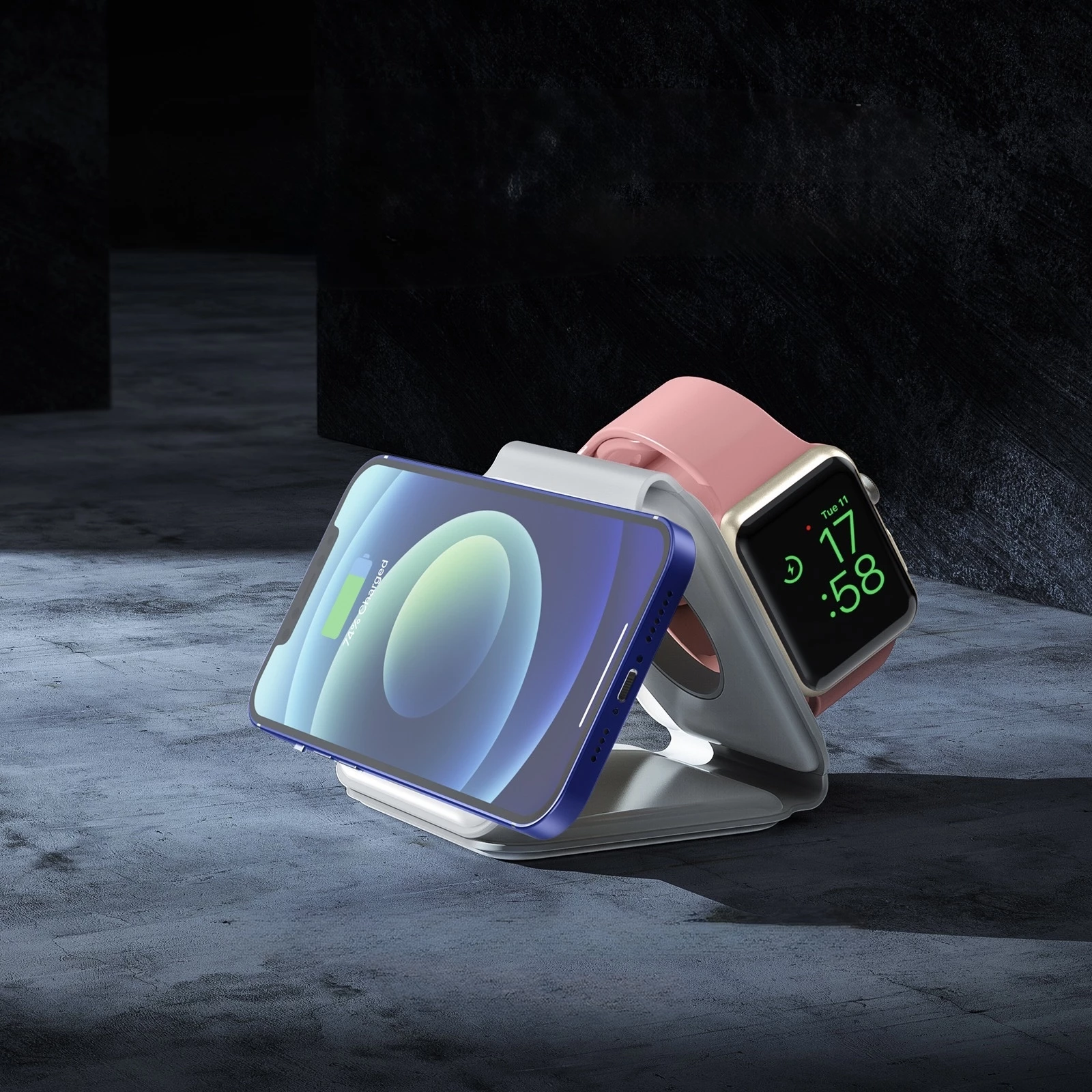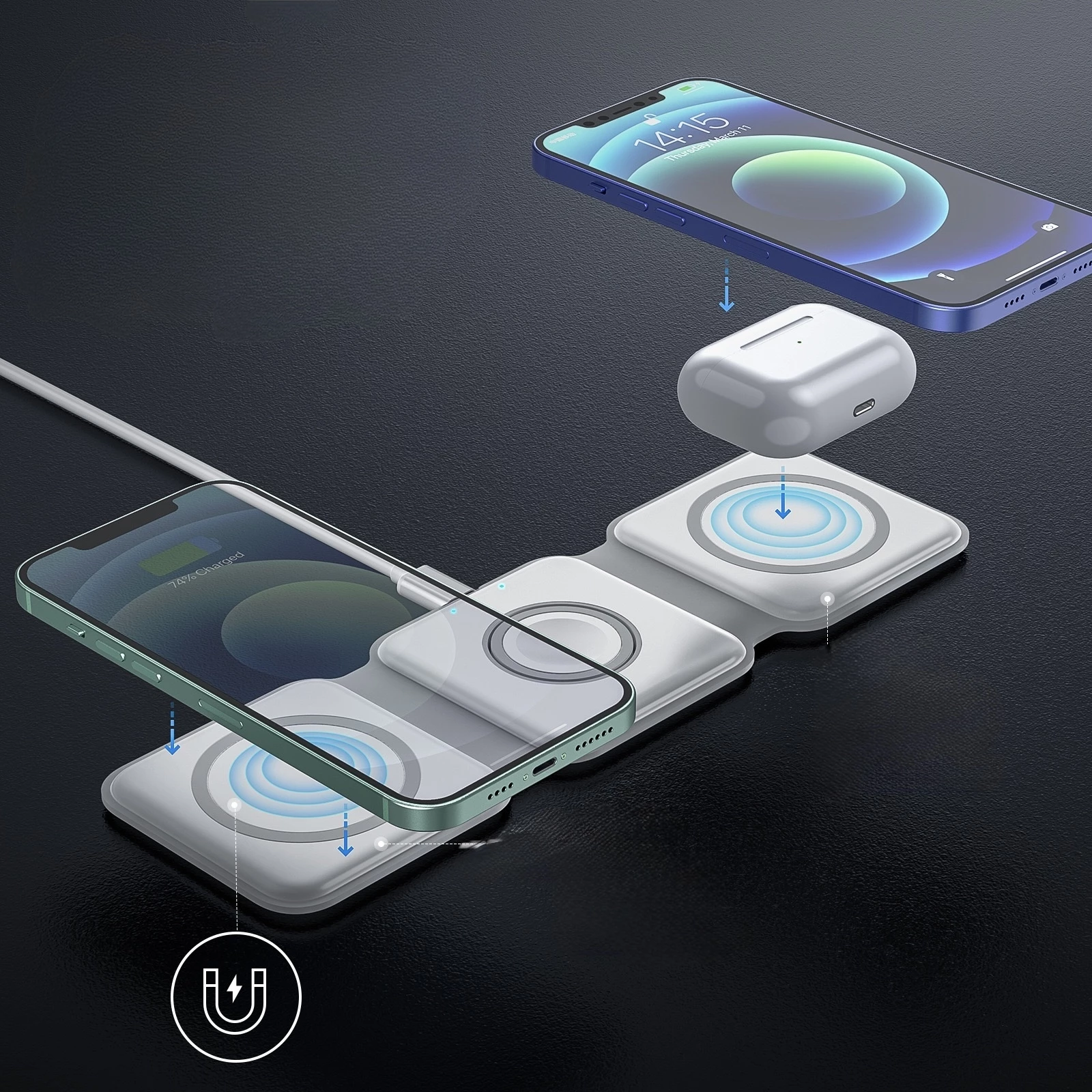 Магнітна бездротова зарядна станція 3 в 1 для iPhone Apple Watch та AirPods 15w White