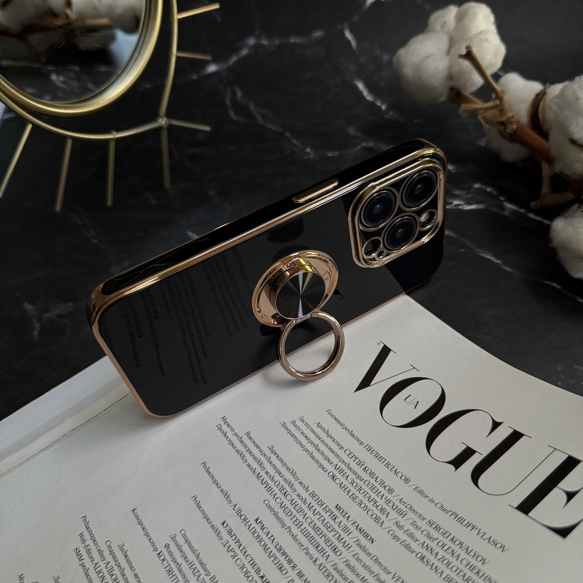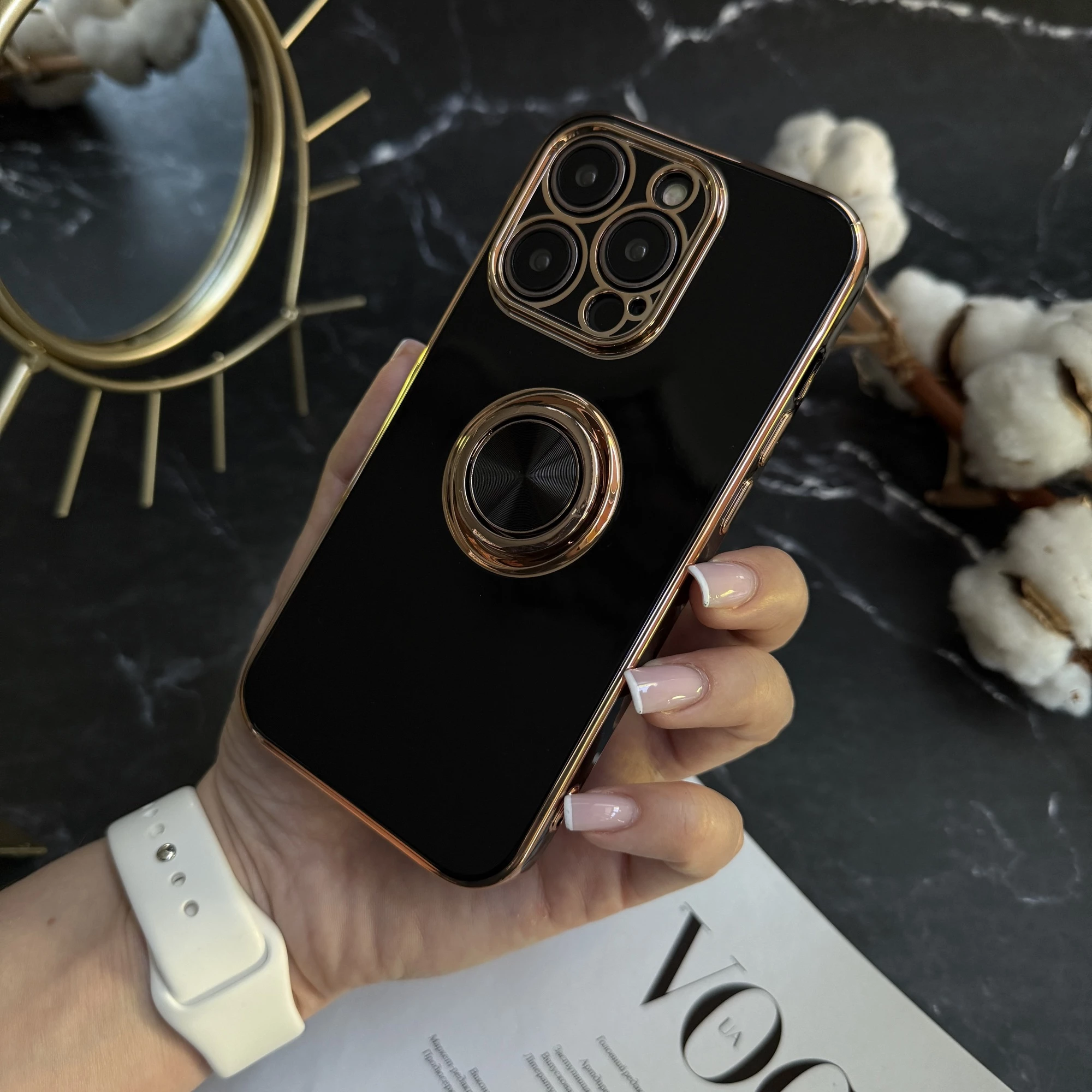 Чохол глянцевий силікон з кільцем тримачем для iPhone 12 Pro Black
