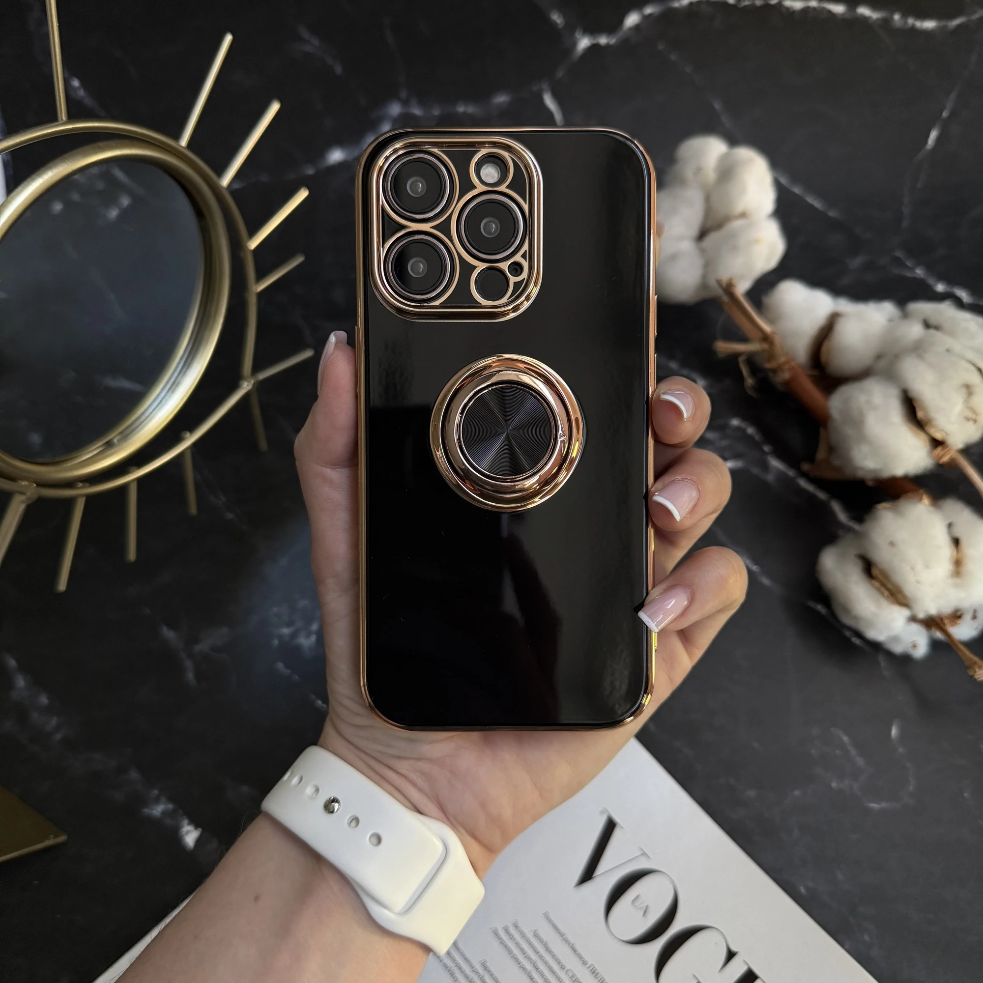 Елегантний та вишуканий варіант захисного чохла. Корпус виконаний з глянцевого пружного силікону. Він привертає увагу своїм унікальним виглядом. Головною фішкою є вбудоване металеве кільце, за допомогою якого телефон не вислизатиме з рук а ваші селфі у дзеркалі стануть ще яскравішими. Також можна використовувати як настільну підставку та кріплення на магнітному автотримачі. Ще однією перевагою є наявність антиподряпного покриття зсередини, цим самим забезпечуючи безпеку вашого IPhone з усіх сторін.
