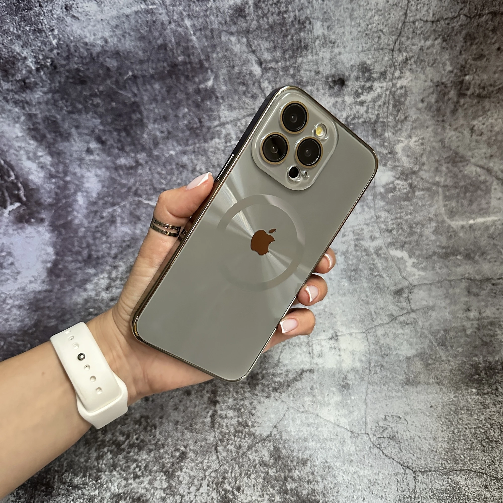 Чохол для захисту твого IPhone виконано з міцного полікарбонату та силіконових бортів. Підтримує бездротову зарядку MagSafe. На захисті камери додатково встановлені скляні лінзи. Лазерна технологія створює на корпусі диско ефект. Лого на корпусі є випуклим за принципом 3D. Телефон у такому чохлі виглядає вражаюче, адже при потраплянні світла на нього корпус переливається лазерними променями.