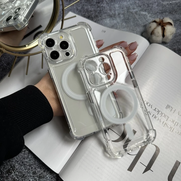 Усі кращі функціональні можливості втілено в одному прозорому чохлі. Прозорий міцний корпус виконаний з полікарбонату. Ударостійкі борти захищають корпус телефону , екран та усі його бічні грані. Блок камер покриває захист, щоб уникнути пошкоджень та подряпин. Приємним бонусом є підтримка швидкої бездротової зарядки MagSafe. Чохол з точністю повторює форму IPhone, а кнопки гучності та блокування контрастно виділені металевими кнопками.