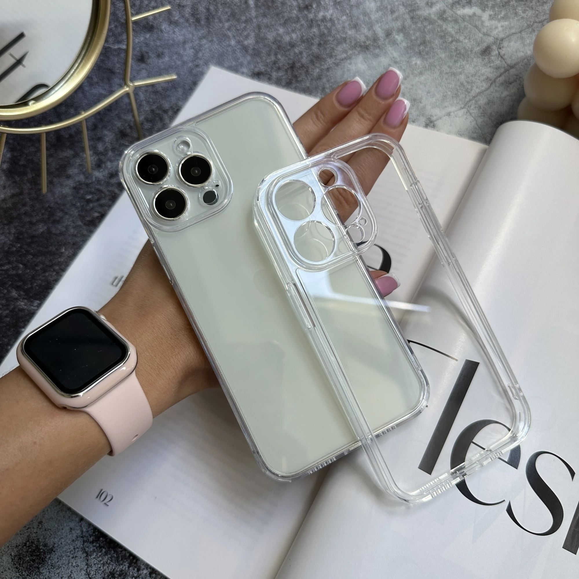 Сучасний варіант кристально прозорого чохла. Задня кришка- це вдале поєднання двох якісних матеріалів: термопуліуретану TPU та полікарбонату. Чохол легко встановлюється на корпус, завдяки силіконовим бортам, виготовлених з мʼякого амортизуючого силікону. Прозорий ударостійкий бампер ідеально підкреслить оригінальний колір корпусу IPhone та захистить його від можливих пошкоджень. Такий варіант захисного чохла попіклується не лише про цілісність корпусу а ще й захистить камеру та екран. Це надійний і стильний захист вашого улюбленого гаджету.