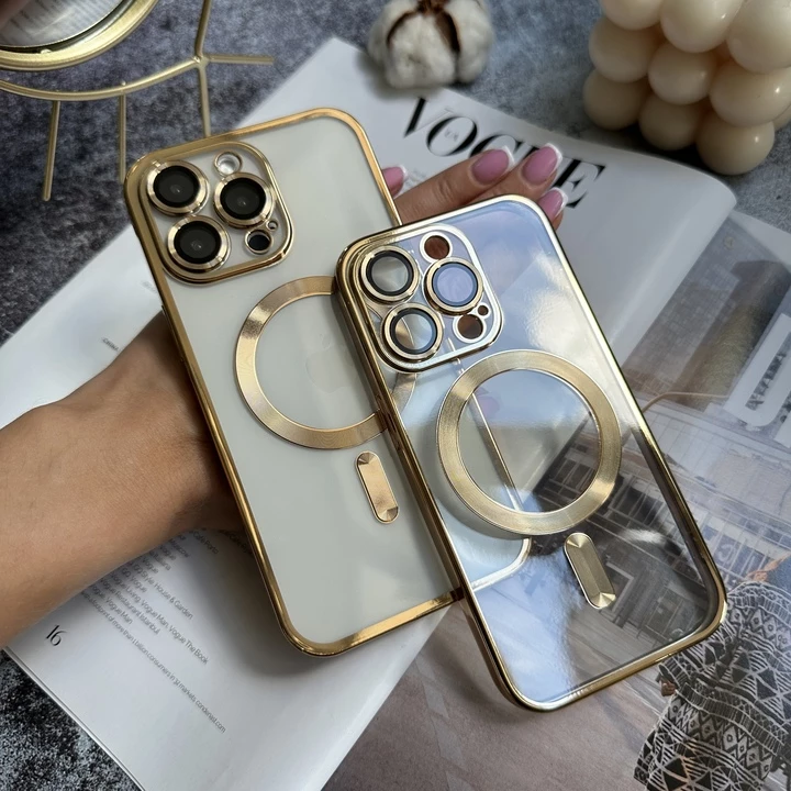 Прозорий силіконовий чохол, виготовлений з пластичного матеріалу TPU, який вирізняється чудовими амортизуючими та захисними властивостями. Перевагою даного чохла є наявність вмонтованих магнітів, які фіксують IPhone на безпровідних зарядках та магнітних тримачах. Кольорові борти гармонійно поєднуються з магнітним елементом MagSafe в один і той же колір. Доступні різноманітні кольори бортиків, тому майбутньому власнику легко буде обрати улюблений колір. Камера у чохлі оснащена вбудованим склом, завдяки якому забезпечується високий рівень захисту від механічних пошкоджень під час ударів і падінь. Прозорий корпус дозволяє не приховувати яблучний логотип.