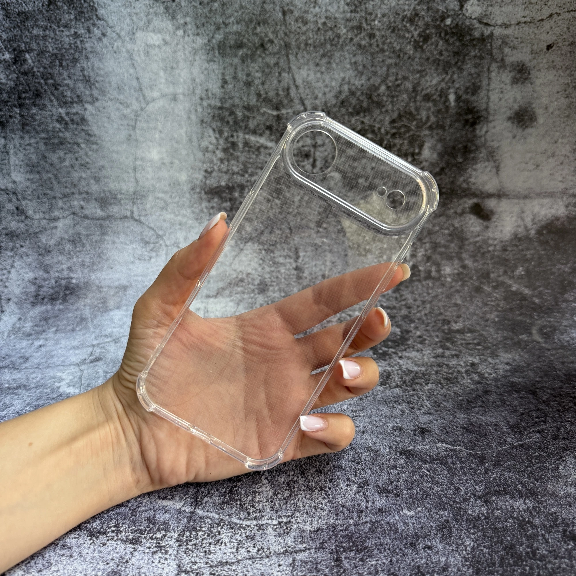 Прозорий силіконовий кейс з посиленими кутами, підкреслює дизайн пристрою та служить чудовим захистом для нього. Тонкий, гнучкий та водночас еластичний матеріал точно повторює форму IPhone та не ковзає в руках. Посилені борти по периметру захистять смартфон від пошкоджень у випадку падіння на плоскі поверхні. Кейс надійно захищає від пилу бруду та ударів не лише корпус IPhone а ще й камеру.