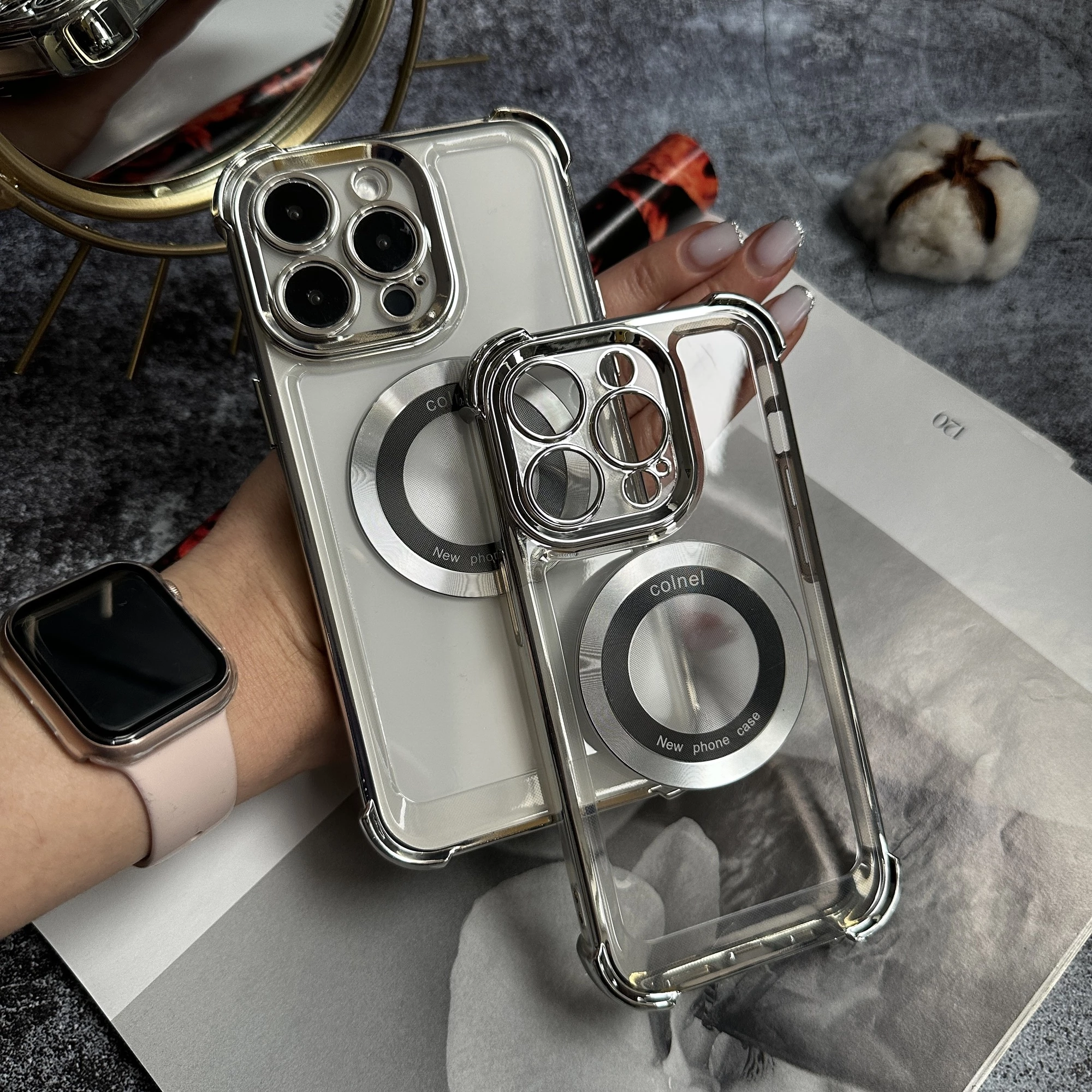Протиударний прозорий чохол з MagSafe, виготовлений з міцного матеріалу термополіуретану TPU. Прозорий корпус аксесуару підкреслює оригінальний колір IPhone, а максимально виступаючі кольорові борти додають вишуканого та неперевершеного вигляду телефону у цьому кейсі. Камера закрита та захищена від можливих пошкоджень а також візуально виділена кольором який іде в тон виступаючих бортів. Цей чохол це гармонійне поєднання надійного захисту та ефектного вигляду.