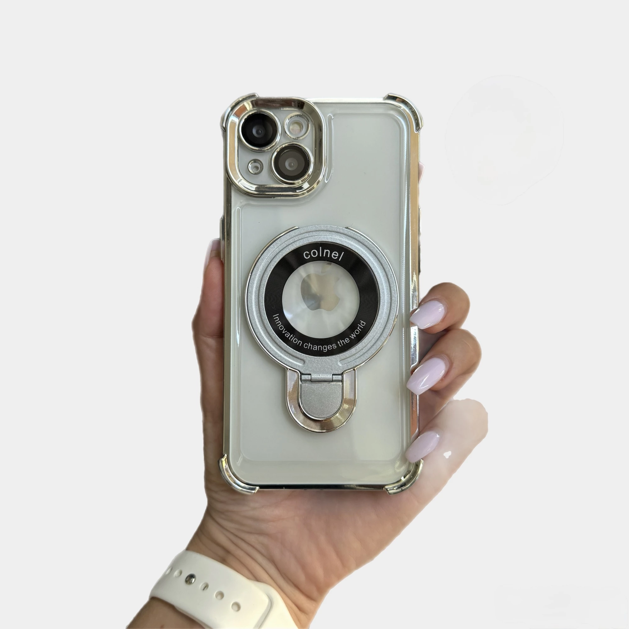 Чохол силіконовий ударостійкий з Magsafe і підставкою для iPhone 15 Plus Silver