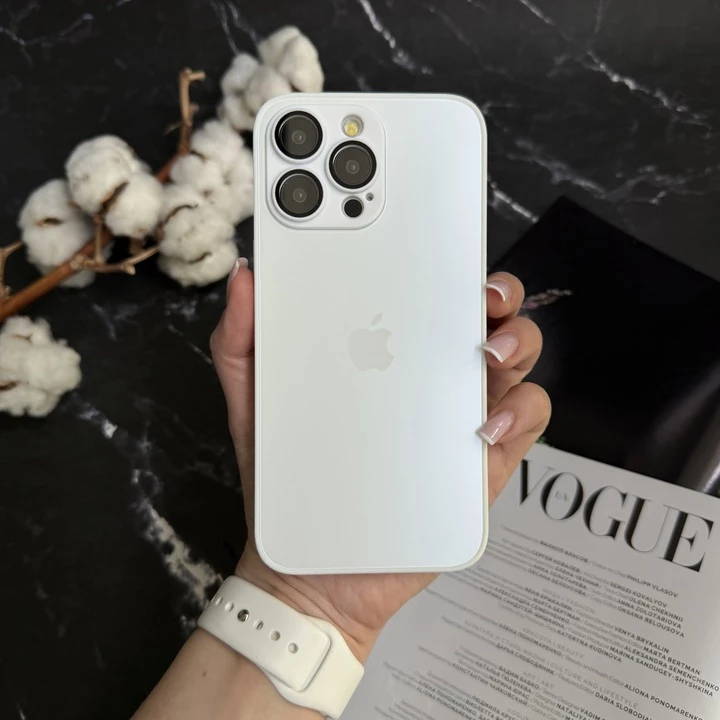 Скляний, матовий чохол , виконаний з загартованого скла преміум класу. Саме такий матеріал чудово забезпечує надійний захист і неймовірний вигляд пристрою власникам IPhone. Матова поверхня імітує оригінальний корпус IPhone, та створює ефект телефону без захисного чохла. Силіконові борти захищають усі бічні грані, при цьому не збільшують загальний вигляд телефону. Додатковий захист камери забезпечать вмонтовані скляні лінзи.