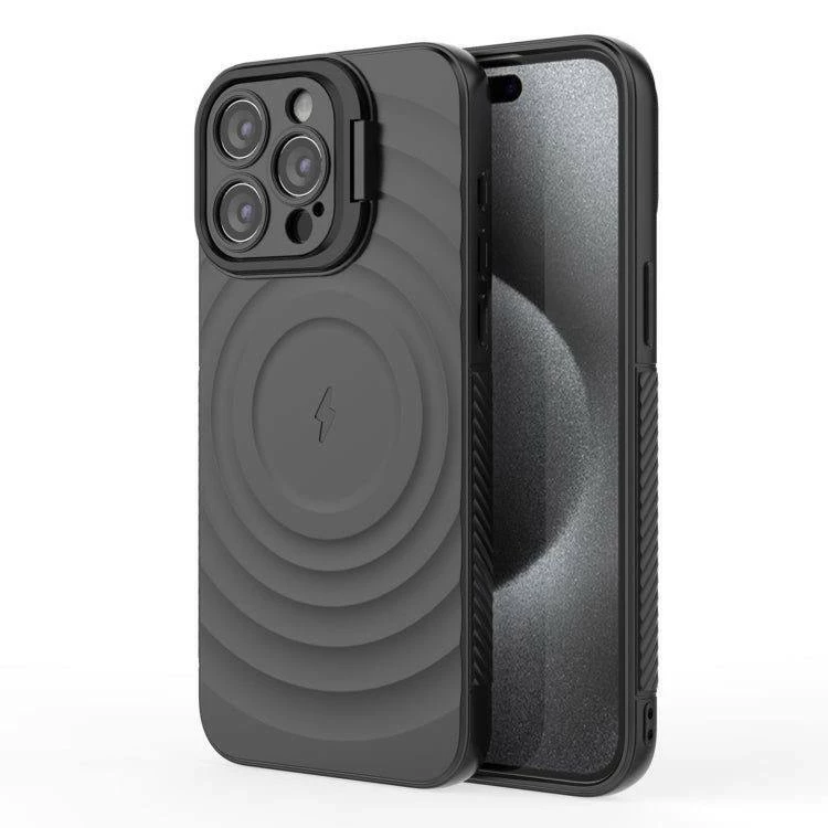 Силіконовий протиударний чохол з відкидною підставкою MagSafe Support Texture для iPhone 13 Pro Black