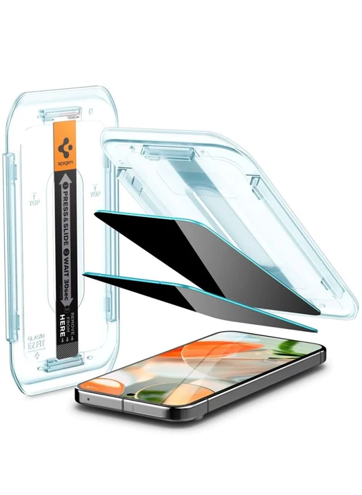 Spigen GLAS.tR™ Privacy – захисне скло з антишпигунським ефектом для iPhone (1 шт) Захисне скло Spigen GLAS.tR™ Privacy — надійне рішення для тих, хто піклується не лише про цілісність екрана, а й про конфіденційність. Завдяки спеціальному матовому покриттю з функцією "антишпигун", вміст екрану залишається видимим тільки під прямим кутом — сторонні не побачать вашу інформацію збоку. Основні переваги: Загартоване скло з твердістю 9H — захист від подряпин та ударів Фільтр конфіденційності — приховує вміст дисплея під кутом понад 45° Сумісність з усіма чохлами Spigen Олеофобне та гідрофобне покриття — менше відбитків пальців і бруду EZ FIT лоток у комплекті — легке і точне встановлення вдома Комплектація: • Захисне скло – 1 шт • Фірмовий лоток для встановлення • Набір серветок для очищення